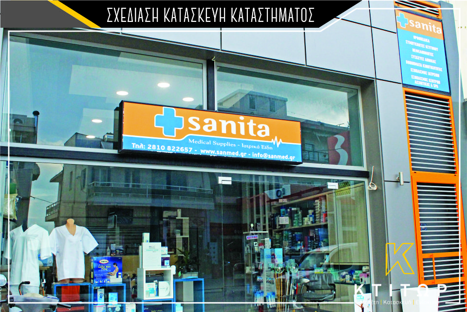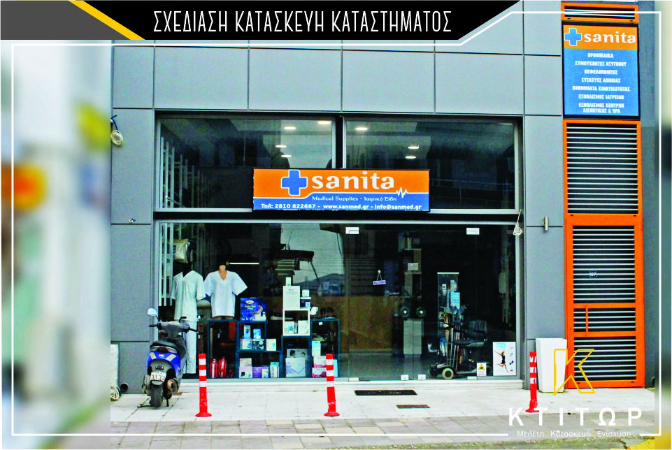 Μελέτη, επίβλεψη και κατασκευή της επιχείρησης «SANITA», στην οδό Κνωσού στο Ηράκλειο. Το έργο αφορά την μελέτη και την επίβλεψη της ανακαίνισης του καταστήματος ιατρικών ειδών.